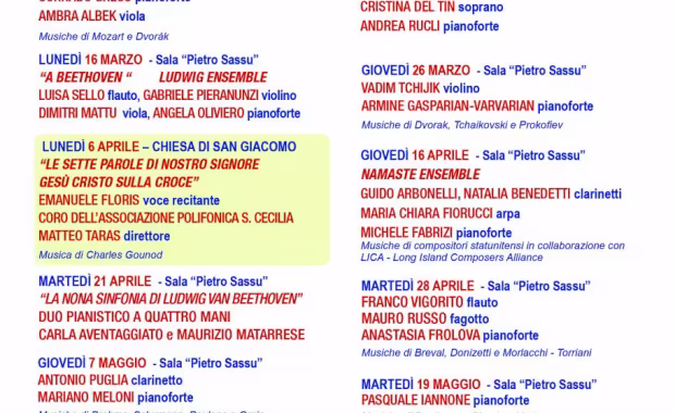 Cari amici, dobbiamo purtroppo comunicarvi che, nel rispetto del Decreto del Presidente del Consiglio dei Ministri del 04/03/2020 e dell'ordinanza del Sindaco di Sassari n.9 del 05/03/2020, saranno rinviati a data da stabiliretutti i concerti in programma fino al 3 aprile, nel dettaglio: